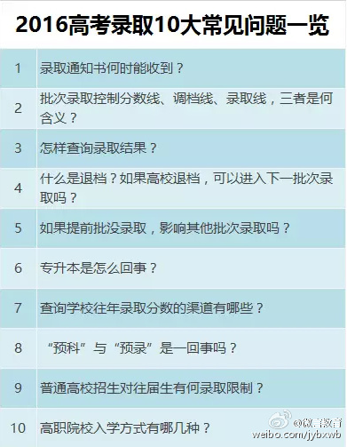海峽網 >教育 >高招 高考錄取10大常見問題匯總,轉需! 2016-07-19 16:19 來源:陽光高考信息平臺 共 0 條評論 字號: 目前各地高招本科普通批錄取工作正在進行中,考生怎樣查詢錄取結果?批次錄取控制分數線、調檔線、錄取線三者是何含義?錄取通知書何時能收到?普通高招對往屆生有何錄取限制……以下為2016高考錄取10大常見問題匯總,轉給需要的同學! 責任編輯:莊婷婷