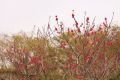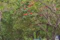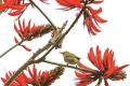 在龜湖公園刺桐花艷紅的花瓣像小喇叭似的張開著,最先把春天的熱鬧勁兒給點起來。